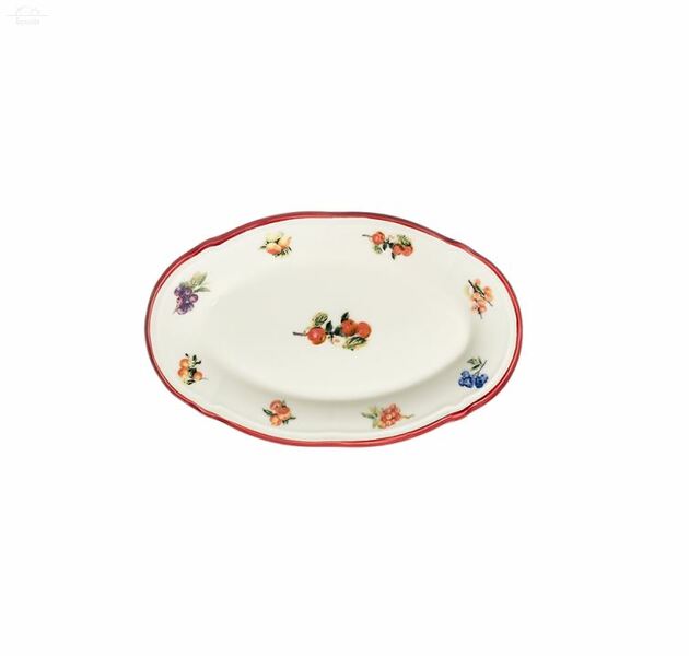 Отзывы к "Блюдо овальное 21 см Rustik Grace Porser керамика, белый с красной каймой, с узором цветочки":