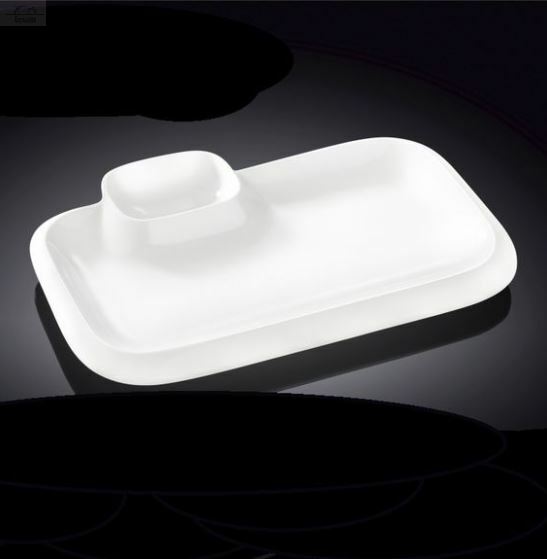 Отзывы к "Блюдо прямоугольное 20х12 см с соусником Wilmax фарфор белый":