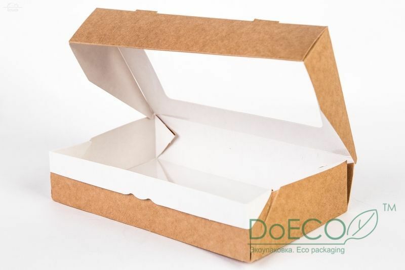 Отзывы к "Коробка ECO на вынос с окном 260х150х40 мм 1450 мл картон крафт":