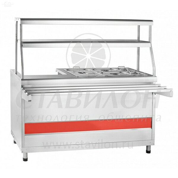 Мармит универсальный Abat Аста ЭМК-70КМУ – это универсальное оборудование, которое позволит вам сохранить вкус и температуру ваших блюд, а также эффективно организовать процесс раздачи в вашем кафе, ресторане или на кейтеринговом мероприятии. Преимущества: 1. Универсальность: используется для непродолжительного сохранения первых и вторых блюд в гастроёмкостях в горячем состоянии (в том числе супов и напитков) и для раздачи их потребителям. 2. Компактность и функциональность: имеет одну конфорку для наплитной посуды и паровую ванну с набором гастроемкостей для вторых блюд. 3. Точная температурная регулировка: оснащен плавной регулировкой температуры в диапазоне от 30 до 85 °С, что позволяет выбрать оптимальный режим для каждого блюда. 4. Дополнительная рабочая поверхность: двойная полка над мармитом обеспечивает большую полезную площадь для выкладки блюд и имеет лампу подсветки для лучшей презентации Ваших блюд. 5. Дополнительное пространство для хранения: внизу расположен нейтральный шкаф