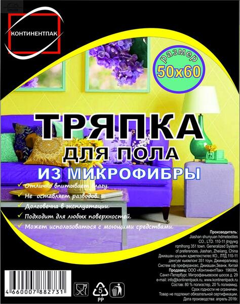 Отзывы к "Тряпка для пола 50х60 см 1 шт/уп микрофибра КонтинентПАК":