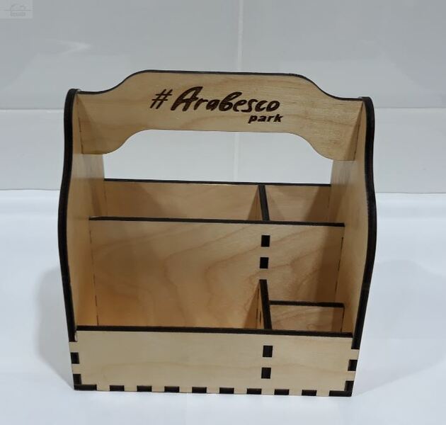 Ящик для сервировки 20х14 см, H21 см 5-ти секционный, фанера, с логотипом Arabesco