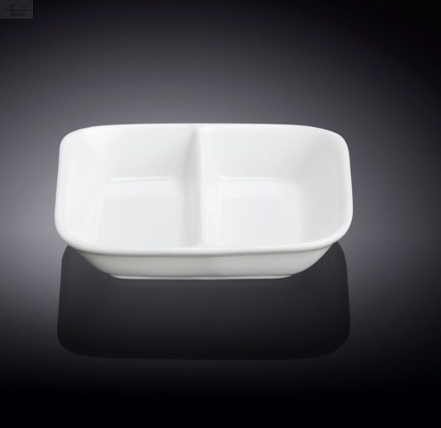 Отзывы к "Блюдце для соуса 55 мл 8,5х8,5 см 2 отделения Wilmax фарфор белый":