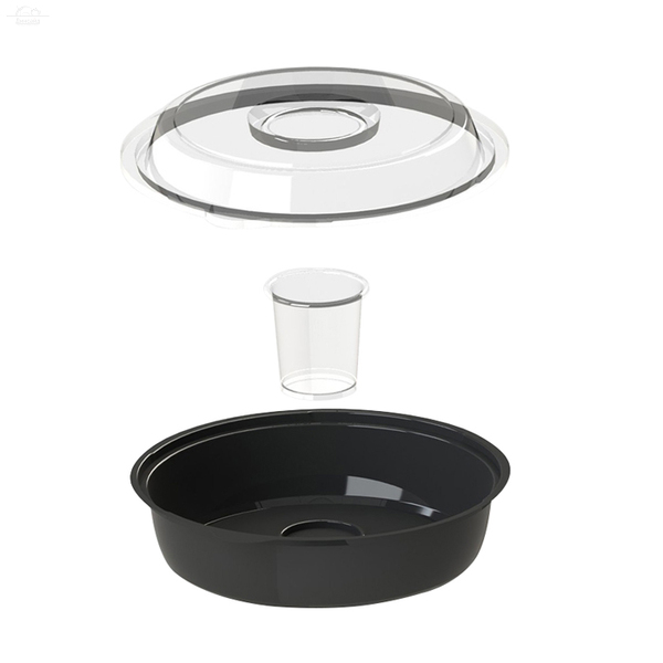 Отзывы к "Контейнер круглый 450 мл D160 мм с соусником PS черный":