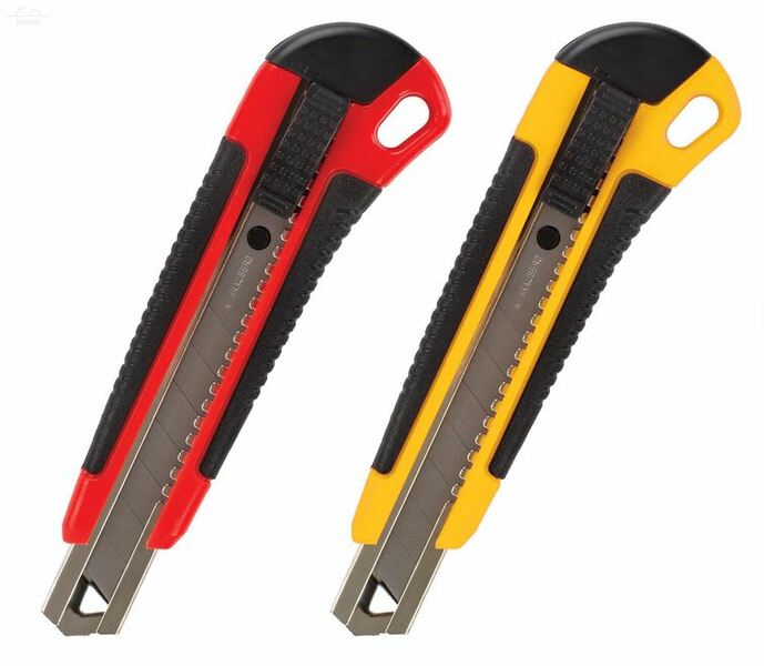 Отзывы к "Нож канцелярский 18 мм BRAUBERG "Universal", 3 лезвия в комплекте, автофиксатор, резиновые вставки":