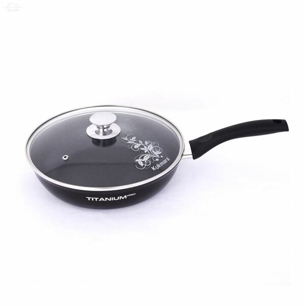 Отзывы к "Сковорода 26 см H6 см литой алюминий антипригарное покрытие со стеклянной крышкой Titanium Kukmara":