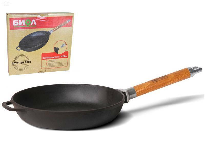 Отзывы к "Сковорода 28 см чугун съемная ручка Биол":
